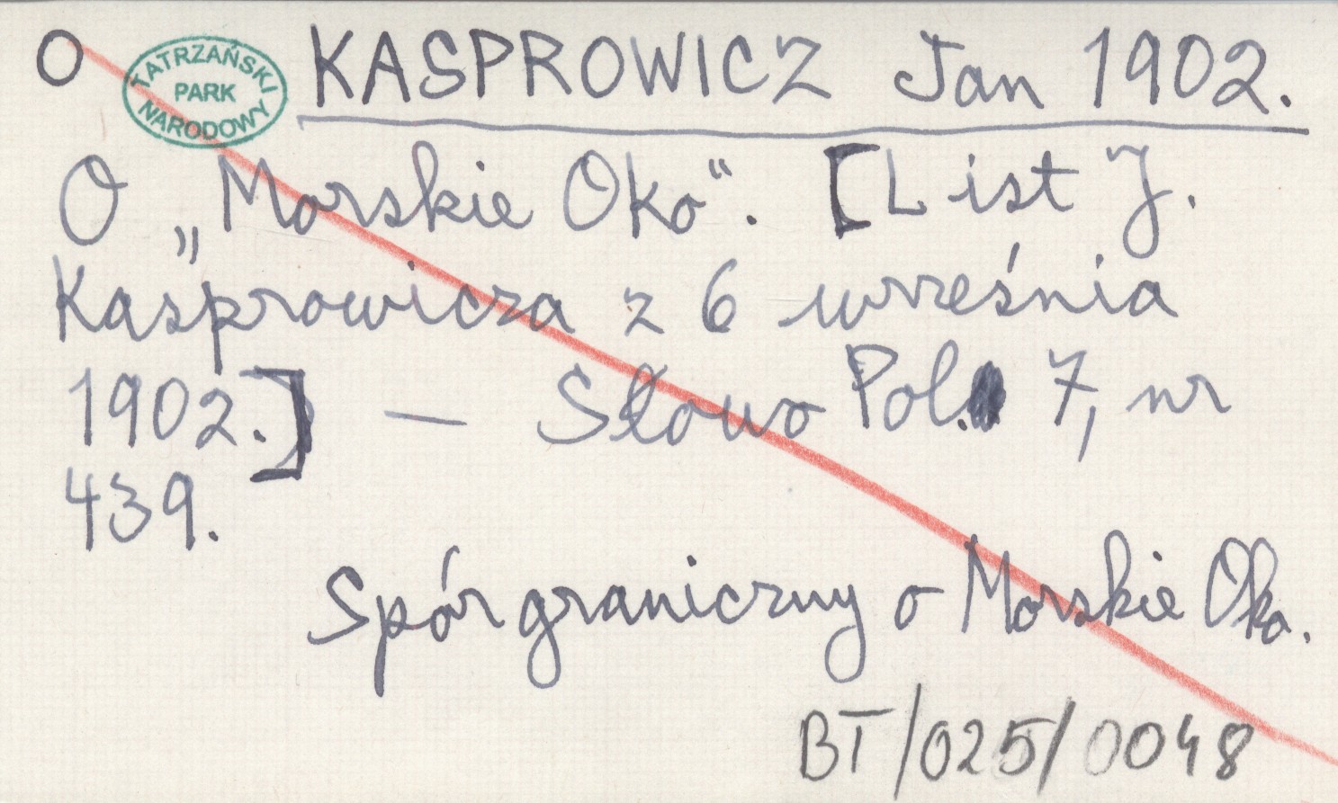 KASPROWICZ Jan 1902 O "Morskie Oko". [Listy J. Kasprowicza z 6 września 1902].