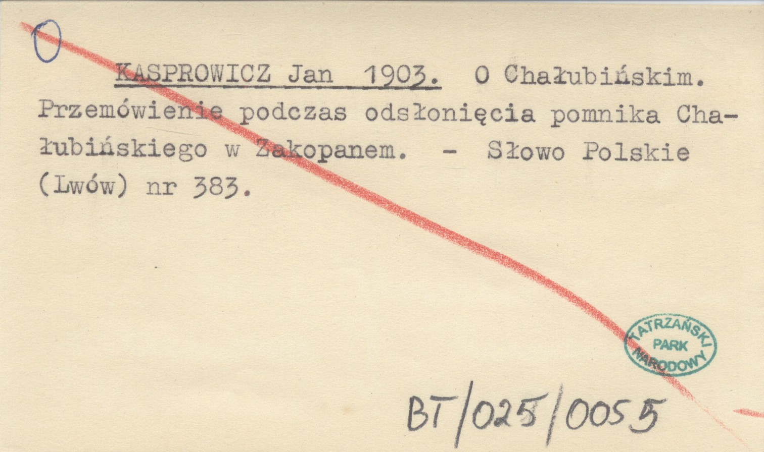 KASPROWICZ Jan 1903 O Chałubińskim. Przemówienie podczas odsłonięcia pomnika Chałubińskiego w Zakopanem.