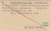 KASPROWICZ Jan 1903 Przemówienie J. Kasprowicza z okazji odsłonięcia pomnika Chałubińskiego w Zakopanem.
