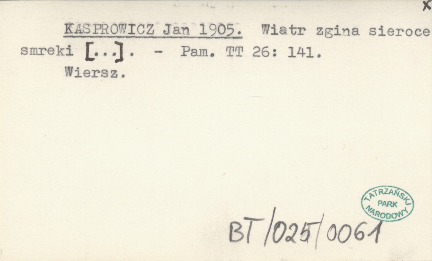 KASPROWICZ Jan 1905 Wiatr zgina sieroce smreki [...].