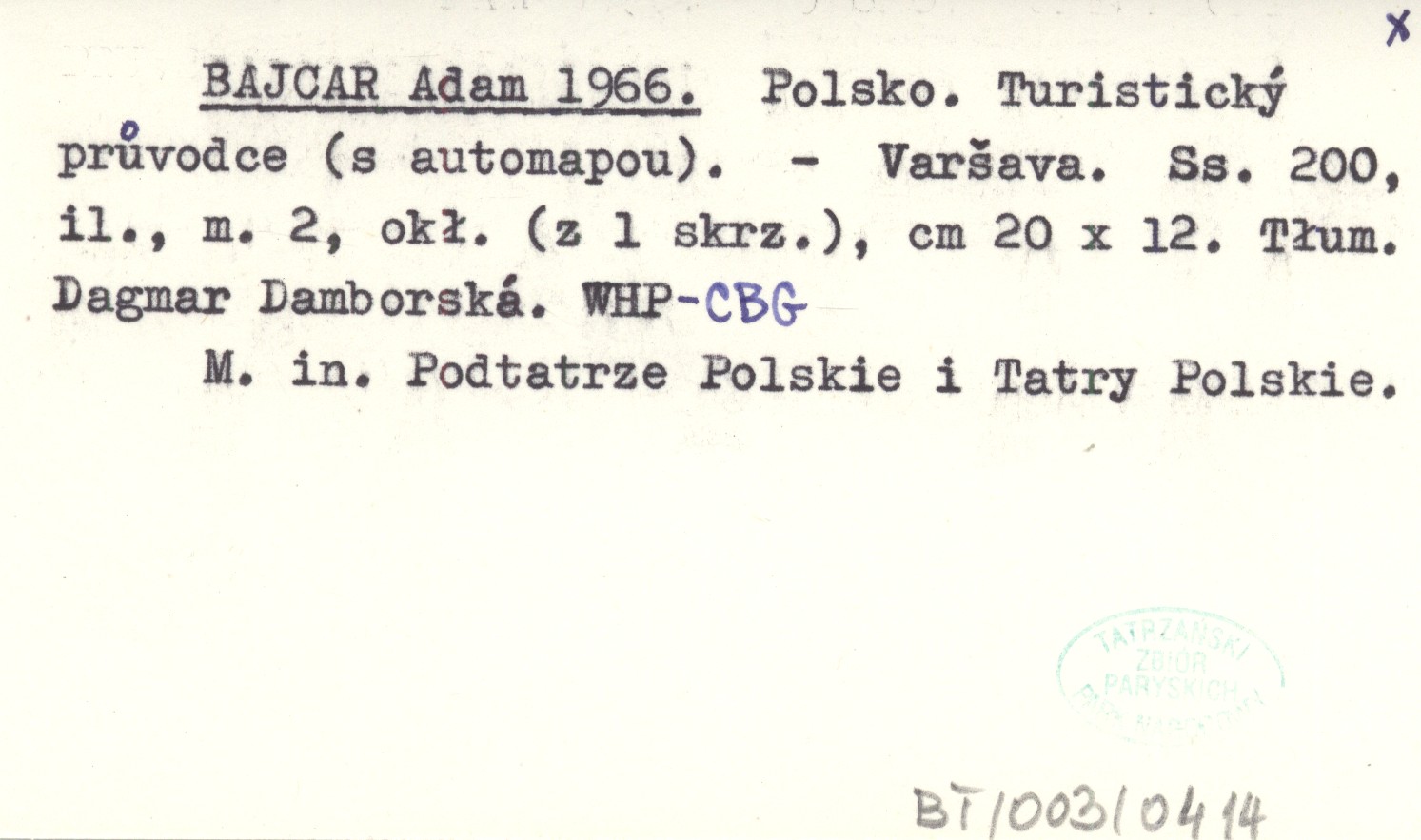 Varšava , 200 s., il., 2 mapy, okł., 20x12 cm. M. in. Podtatrze Polskie i Tatry Polskie. Tłum. Dagmar Damborská.
