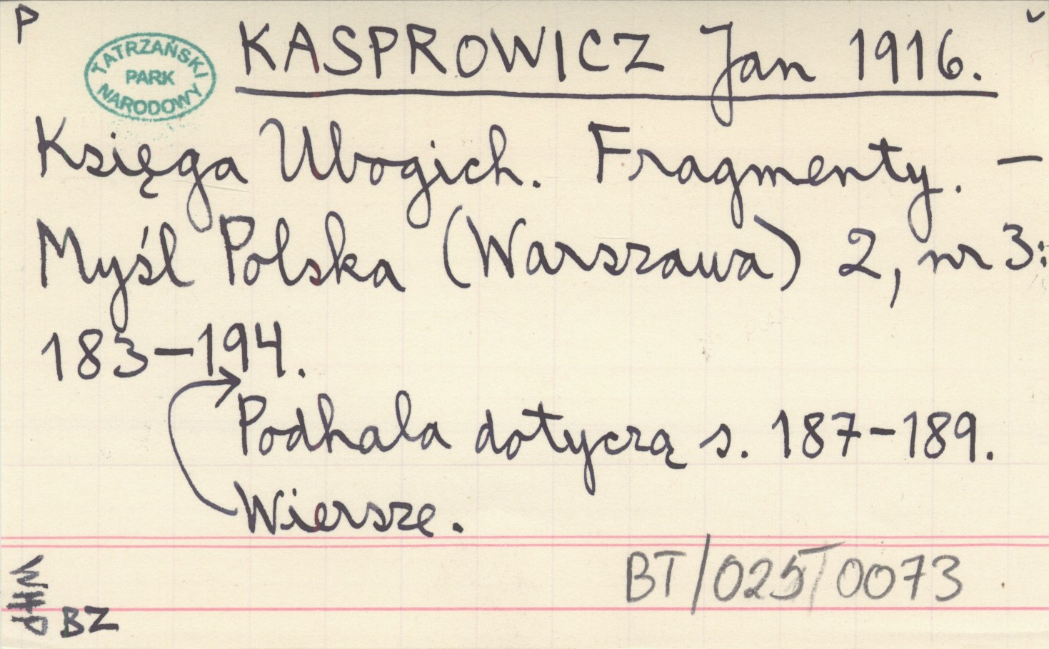 Myśl Polska (Warszawa) , 2, nr 3: 183-194. Wiersze. Podhala dotyczą s. 187-189.