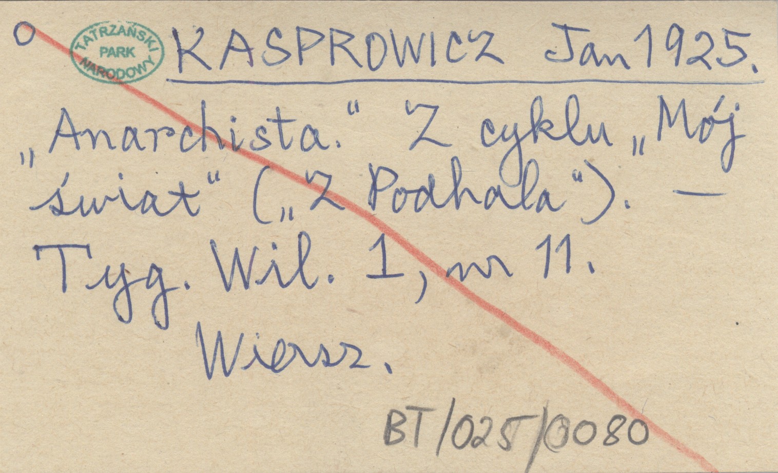 KASPROWICZ Jan 1925 "Anarchista". Z cyklu "Mój świat" ("Z Podhala").