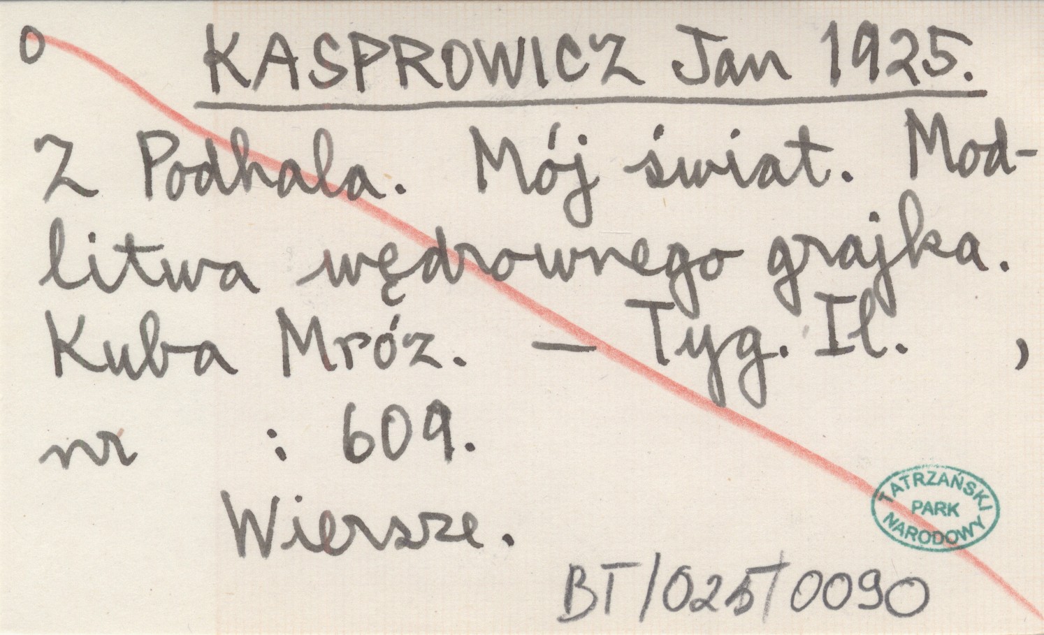 KASPROWICZ Jan 1925 Z Podhala. Mój świat. Modlitwa wędrownego grajka. Kuba Mróz.