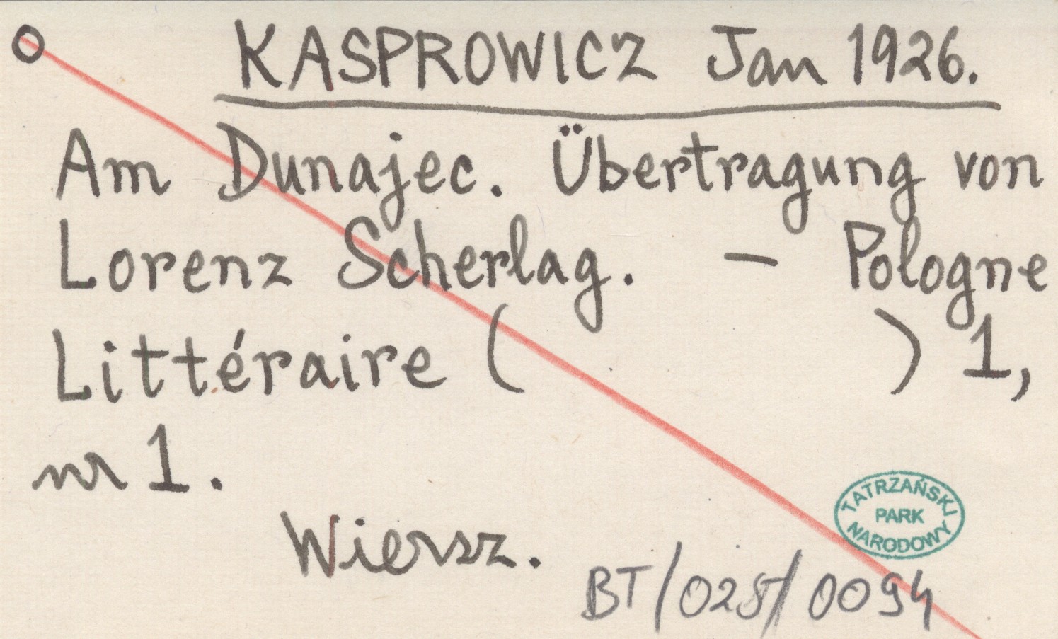 KASPROWICZ Jan 1926 Am Dunajec. Übertragung von Lorenz Scherlag.