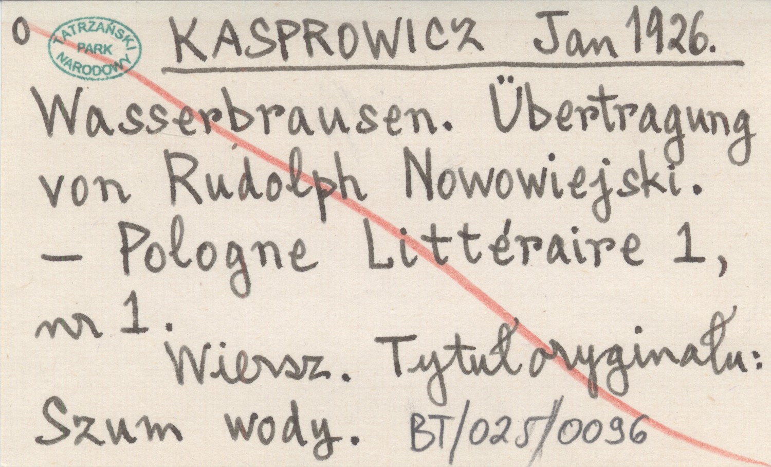 KASPROWICZ Jan 1926 Wasserbrausen. Übertragung von Rudolph Nowowiejski.