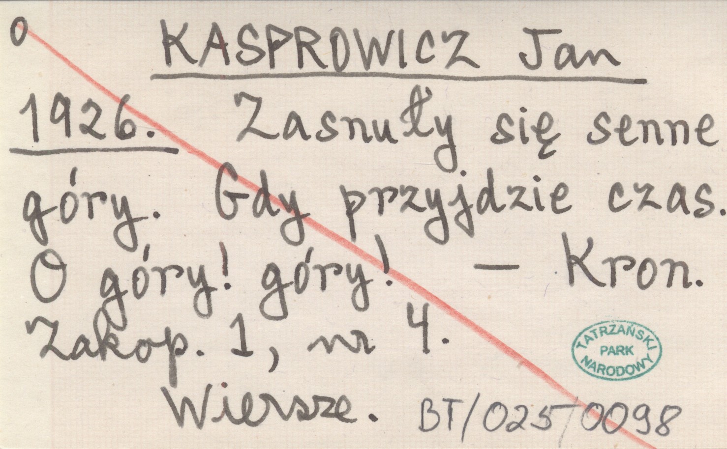 KASPROWICZ Jan 1926 Zasnuły się senne góry. Gdy przyjdzie czas. O góry! góry!