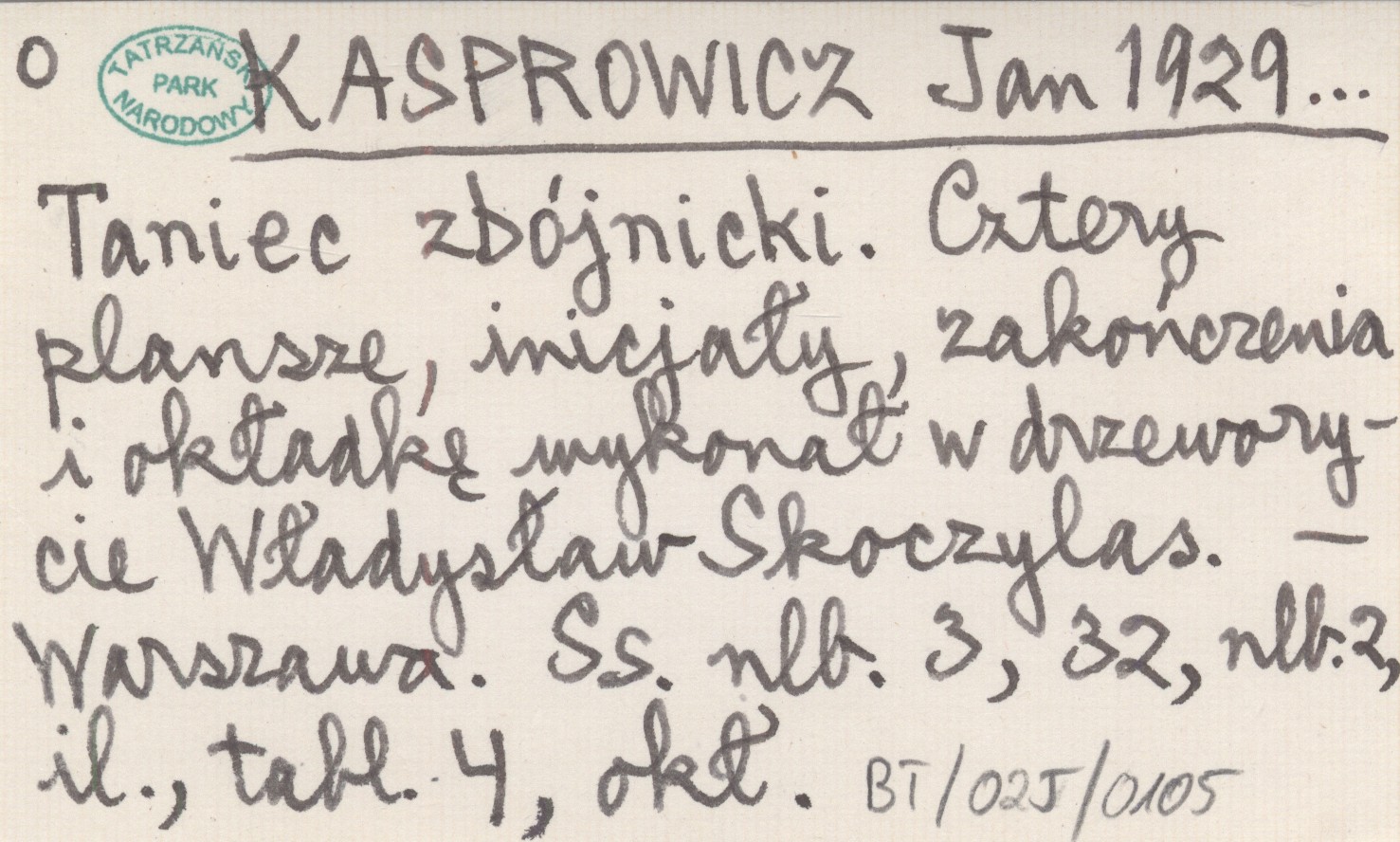 KASPROWICZ Jan 1929... Taniec zbójnicki. Cztery plansze, inicjały, zakończenia i okładkę wykonał w drzeworycie Władysław Skoczylas.
