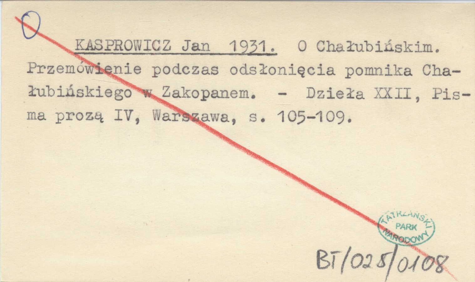 KASPROWICZ Jan 1931 O Chałubińskim. Przemówienie podczas odsłonięcia pomnika Chałubińskiego w Zakopanem.