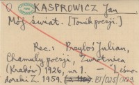 KASPROWICZ Jan Mój świat. [Tomik poezji].