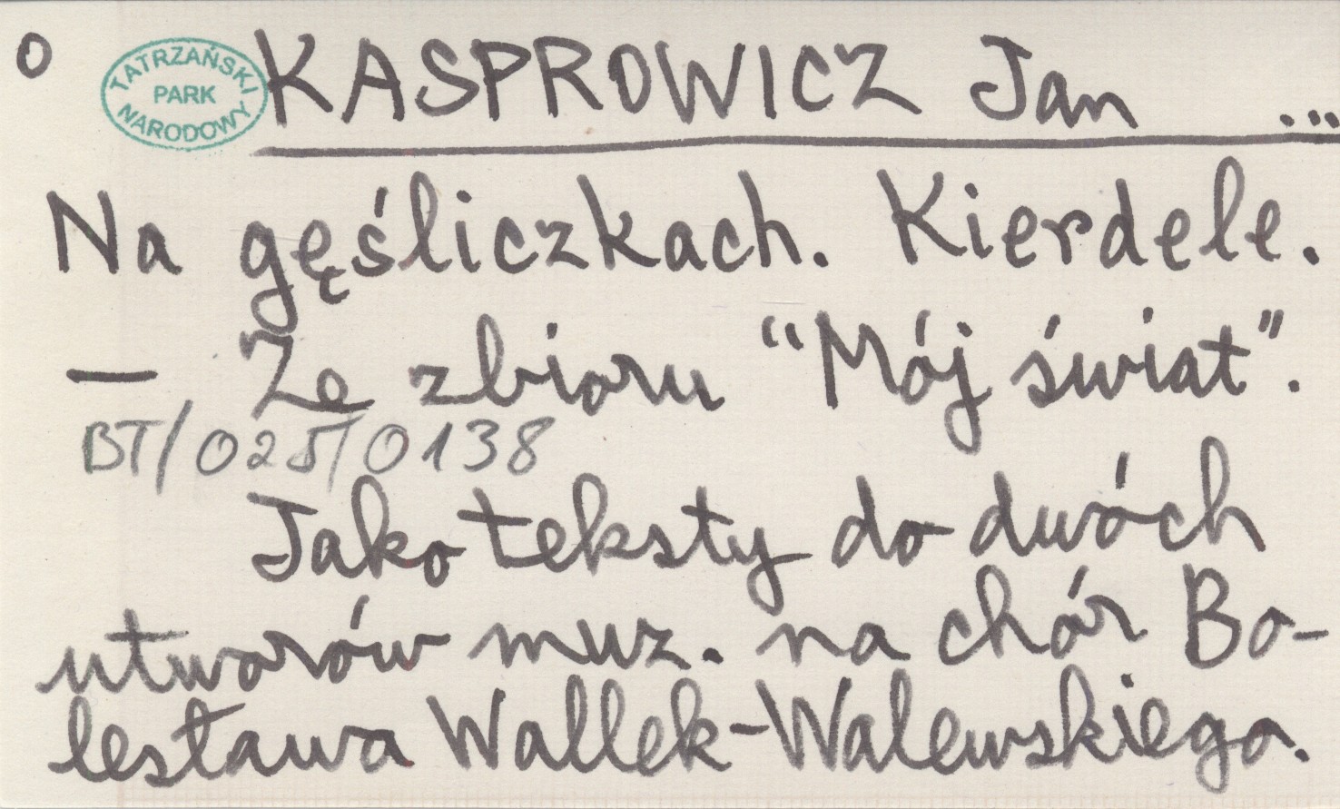 , Jako teksty do dwóch utworów muzycznych na chór Bolesława Wallek-Walewskiego. Ze zbioru "Mój świat".