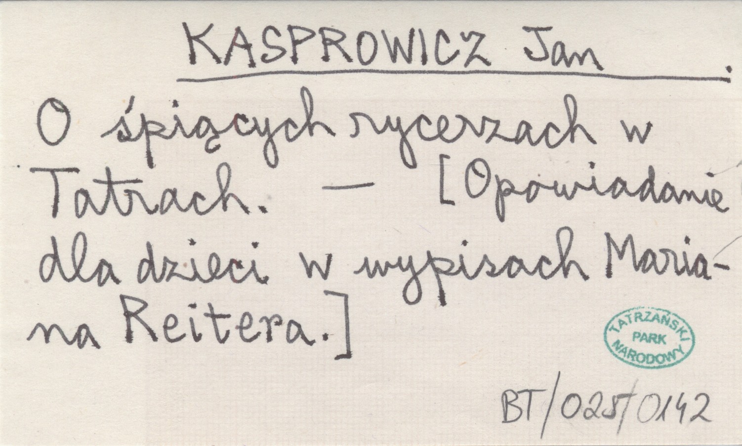 , [Opowiadanie dla dzieci w wypisach Mariana Reitera].