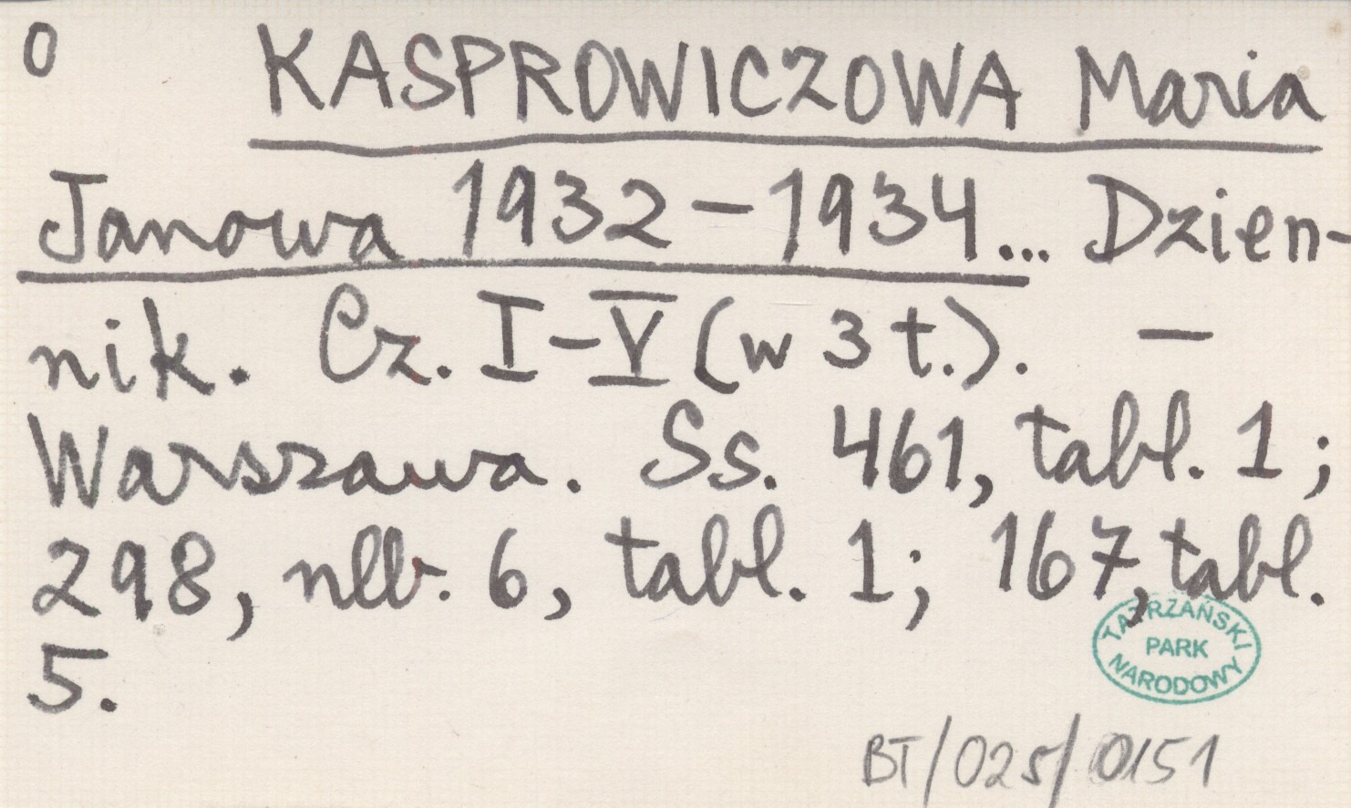 KASPROWICZOWA Maria Janowa 1932-1934... Dziennik. Cz. I-V.