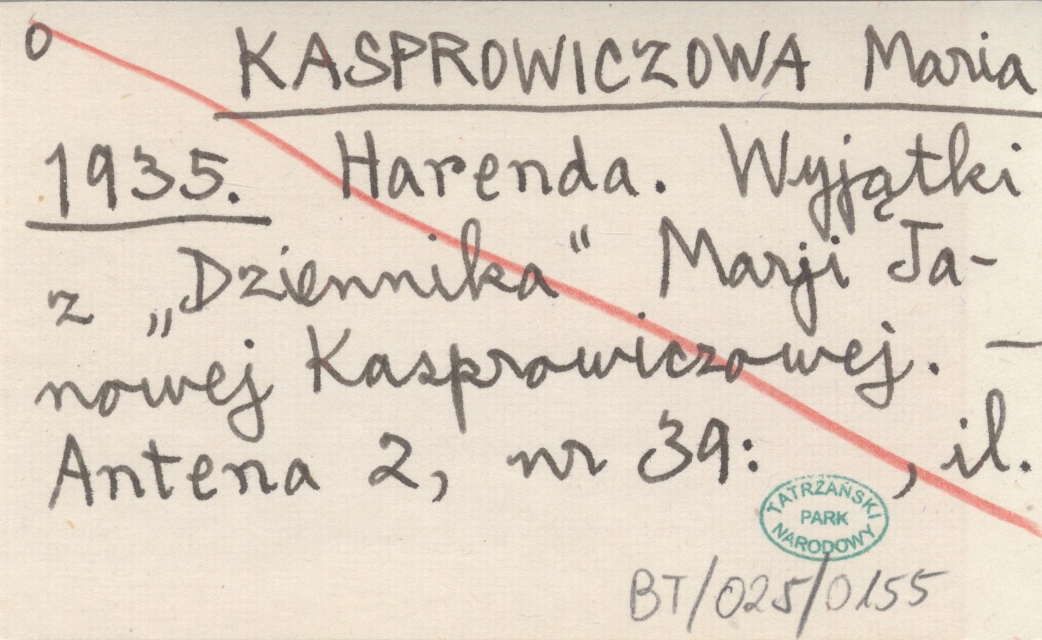 KASPROWICZOWA Maria 1935 Harenda. Wyjątki z "Dziennika" Marji Janowej Kasprowiczowej.