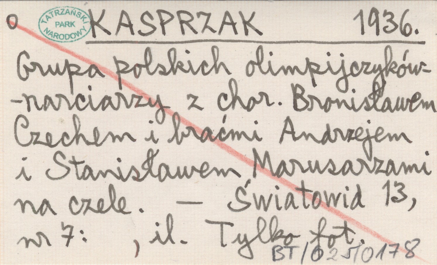 KASPRZAK 1936 Grupa polskich olimpijczyków-narciarzy z chor. Bronisławem Czechem i braćmi Andrzejem i Stanisławem Marusarzami na czele.