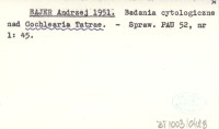 BAJER Andrzej 1951 Badania cytologiczne nad Cochlearia Tatrae.