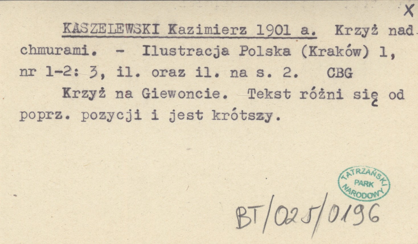 Ilustracja Polska (Kraków) , 1, nr 1-2: 3, il., il. (s. 2). Krzyż na Giewoncie. Tekst różnie się od poprzedniej pozycji i jest krótszy.