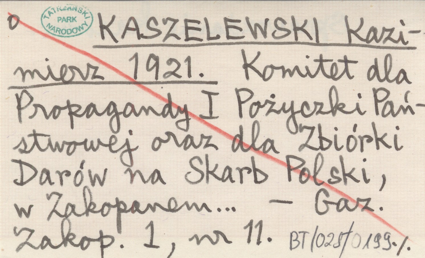 KASZELEWSKI Kazimierz 1921 Komitet dla Propagandy I Pożyczki Państwowej oraz dla Zbiórki Darów na Skarb Polski, w Zakopanem...
