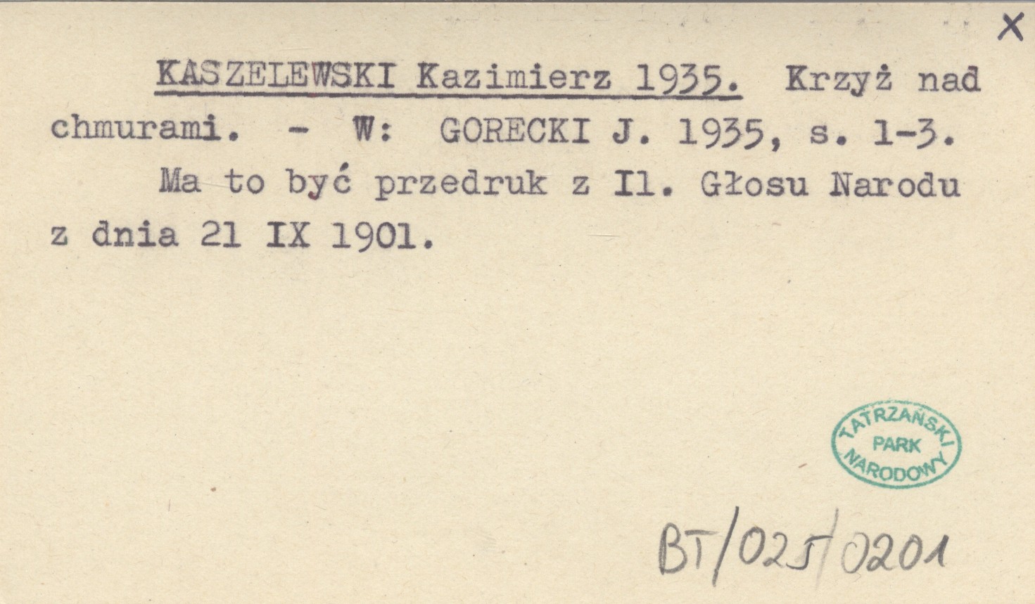 GORECKI J. 1935: 1-3. , Ma to być przedruk z Il. Głosu Narodu z dnia 21 IX 1901.