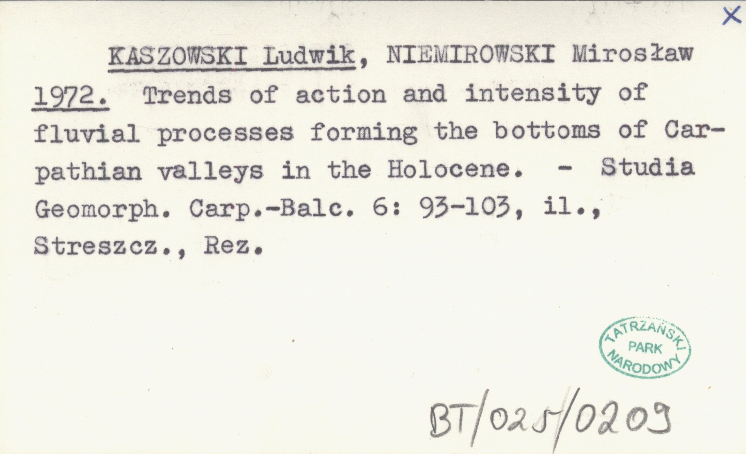 KASZOWSKI Ludwik NIEMIROWSKI, Mirosław. ; 1972 Trends of action and intensity of fluvial processes forming the bottoms of Carpathian valleys in he Holocene.