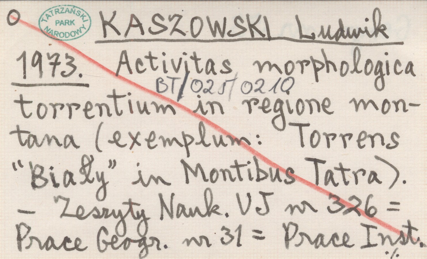 KASZOWSKI Ludwik 1973 Activitas morphologica torrentium in regione montana (exemplum: Torrens "Biały" in Montinus Tatra).