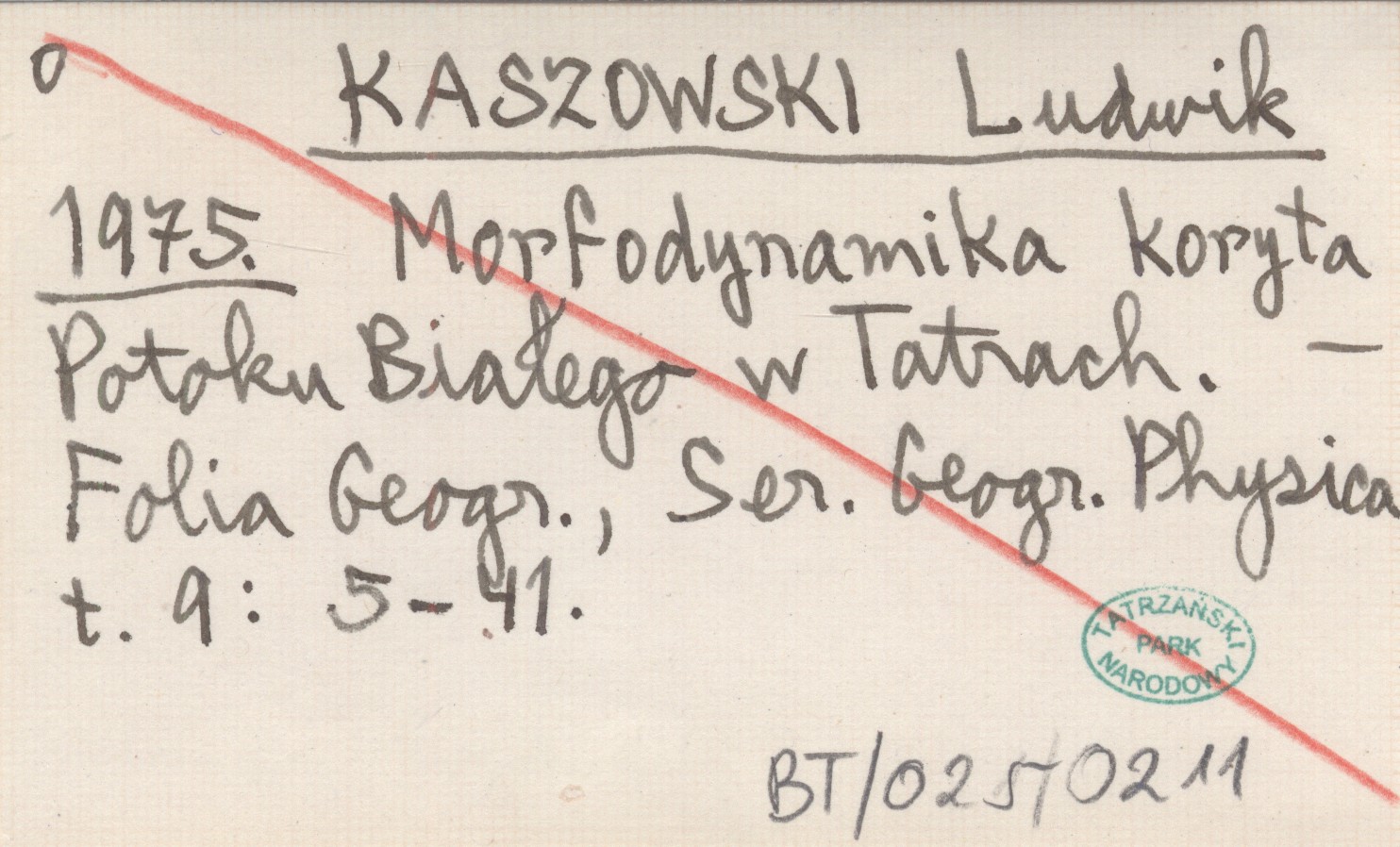 KASZOWSKI Ludwik 1975 Morfodynamika koryta Potoku Białego w Tatrach.