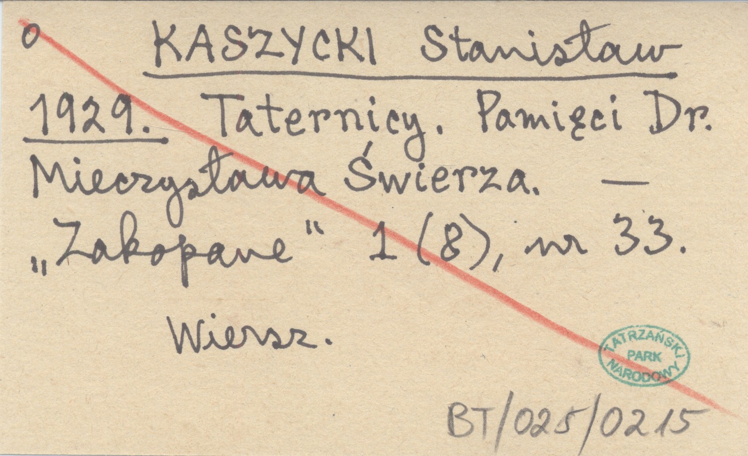 Projekt Digitalizacja fiszek z Bibliografią Tatr i Podtatrza Witolda Henryka Paryskiego jest finansowany ze środków Ministra Kultury i Dziedzictwa Narodowego oraz Tatrzańskiego Parku Narodowego.