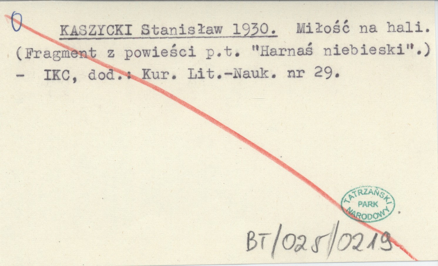 KASZYCKI Stanisław 1930 Miłość na hali. (Fragment z powieści p.t. "Harnaś niebieski").