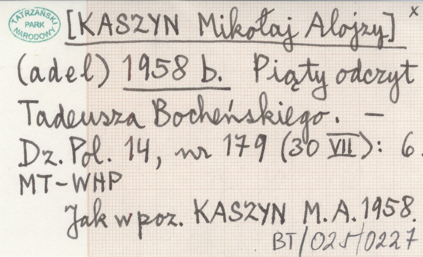 Dziennik Polski, 14, nr 179 (30 VII): 6. Jak w poz. KASZYN M. A. 1958. KASZYN M. A. 1958