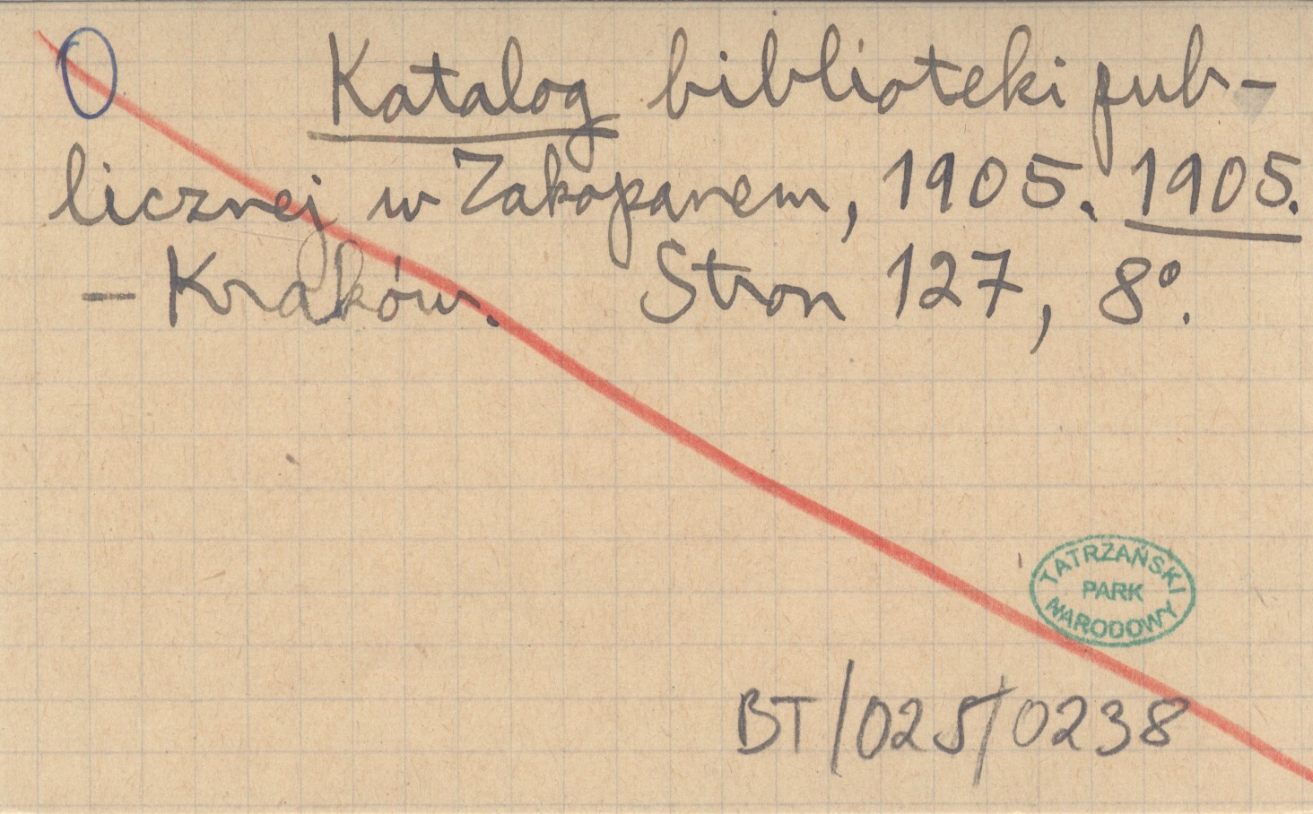 Katalog biblioteki publicznej w Zakopanem, 1905. 1905
