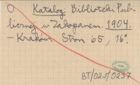 Katalog bibljoteki publicznej w Zakopanem. 1908