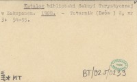 Katalog biblioteki Sekcyi Turystycznej w Zakopanem. 1908