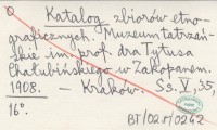 Katalog zbiorów etnograficznych. Muzeum tatrzańskie im. prof. dra Tytusa Chałubińskiego w Zakopanem. 1908