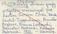 Katalog obrazów grupy artystów zrzeszonych pod hasłem Sursum Corda. Wanda Gentil-Tippenhauer, Bronisław Brykner, Brunon Lechowski, Stanisław Noakowski, Kazimierz Stabrowski. 1922