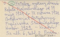 Katalog wystawy obrazów Rafała Malczewskiego od 19 maja 1929 do 12 czerwca 1929. Antykwariat Artystyczny Franciszka Studzińskiego, Kraków. 1929