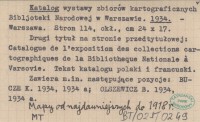 Katalog wystawy zbiorów kartograficznych Bibljoteki Narodowej w Warszawie. 1934