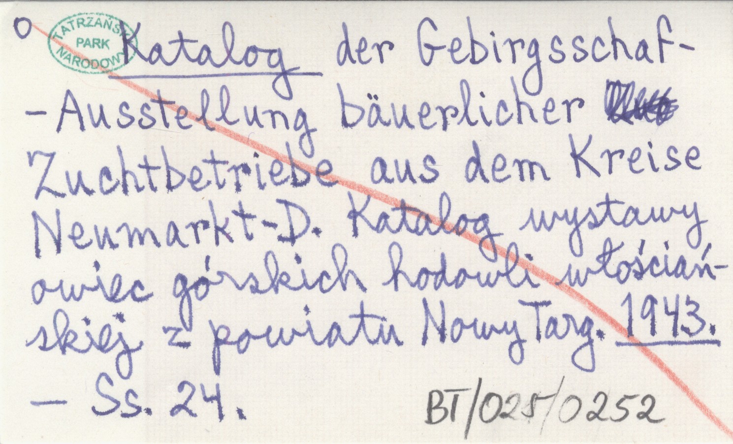 Katalog der Gebirgsschaf-Ausstellung bäuerlicher Zuchtbetriebe aus dem Kreise Neumarkt-D. Katalog wystawy owiec górskich hodowli włościańskiej z powiatu Nowy Targ. 1943