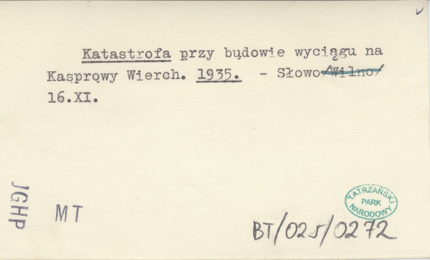 Katastrofa przy budowie wyciągu na Kasprowy Wierch. 1935