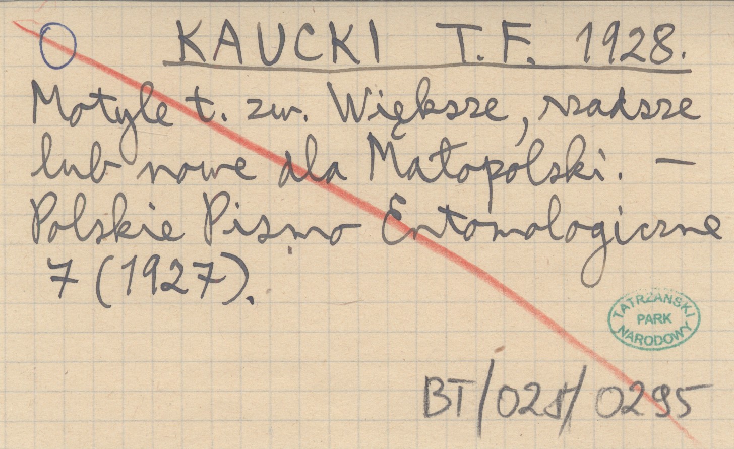 KAUCKI T. F. 1928 Motyle t. zw. Większe, rzadsze lub nowe dla Małopolski.
