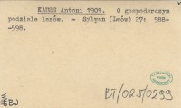 KAUSS Antoni 1909 O gospodarczym podziale lasów.