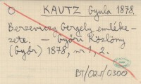 KAUTZ Gyula 1878 Berzeviczy Gergely emlékezete.