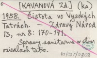 (ka) [KAVANOVÁ Zd.] 1958 Čistota vo Vysokých Tatrách.