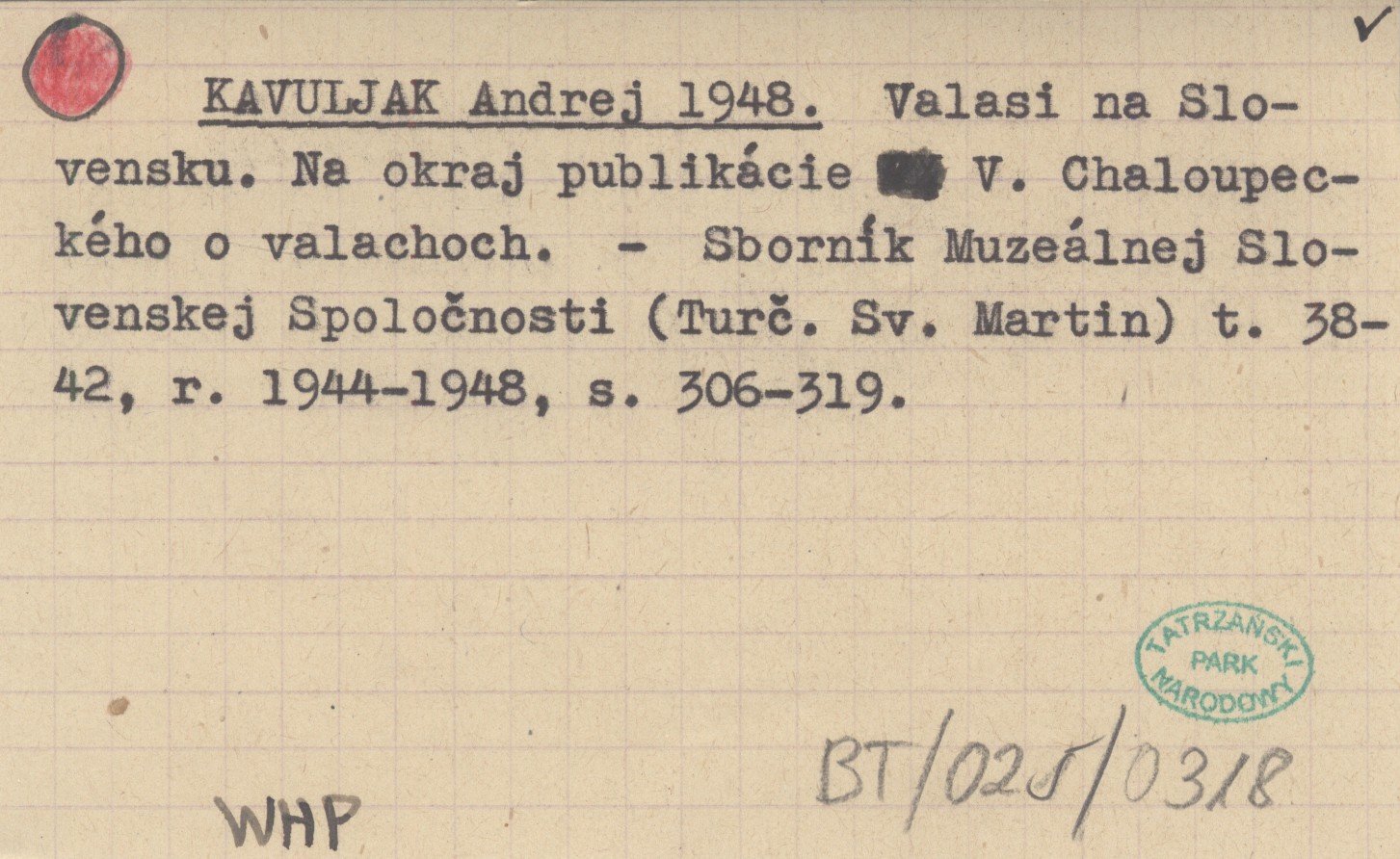 KAVULJAK Andrej 1948 Valasi na Slovensku. Na okraj pubilkácie V. Chaloupeckého o valachoch.