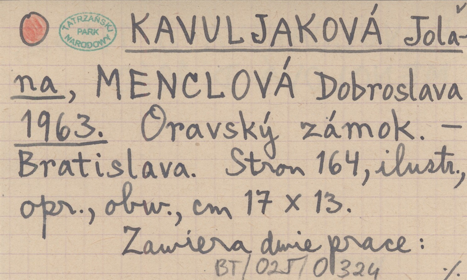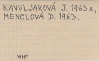 Bratislava , 164 s., il., opr., obw., 17x13 cm. Zawiera dwie prace: KAVULJAKOVÁ J. 1963 a, MENCLOVÁ D. 1963. KAVULJAKOVÁ J. 1963 a MENCLOVÁ D. 1963
