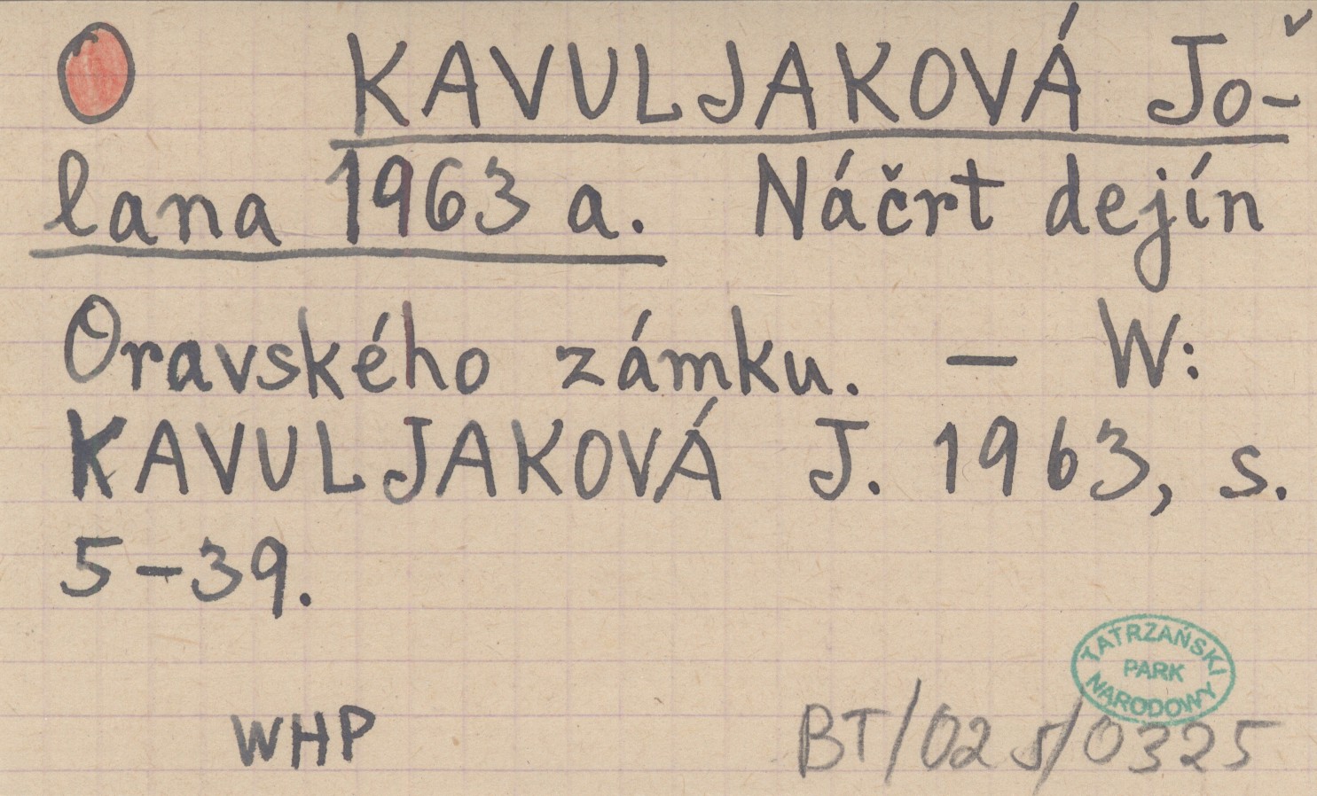 KAVULJAKOVÁ J. 1963: 5-39. ,