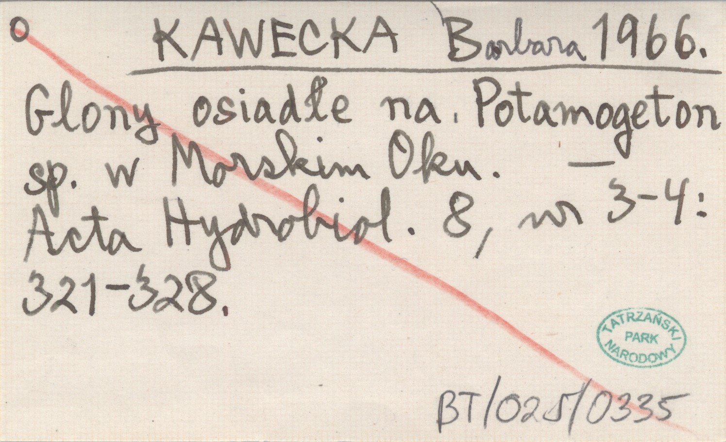 KAWECKA Barbara 1966 Glony osiadłe na Potamogeton sp. w Morskim Oku.