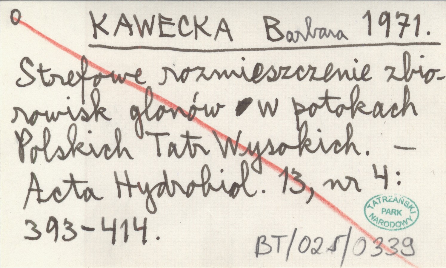 KAWECKA Barbara 1971 Strefowe rozmieszczenie zbiorowisk glonów w potokach Polskich Tatr Wysokich.