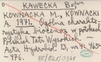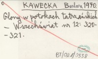 KAWECKA Barbara KOWNACKA, M. ; KOWNACKI, A. ; 1971 Ogólna charakterystyka biocenoz w potokach Tatr Wysokich.