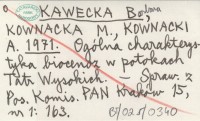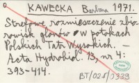 KAWECKA Barbara KOWNACKA, M. ; KOWNACKI, A. ; 1971 Ogólna charakterystyka biocenoz w potokach Polskich Tatr Wysokich.