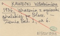 KAWECKI Włodzimierz 1936 Wrażenia z wycieczki góralskiej po Polsce.
